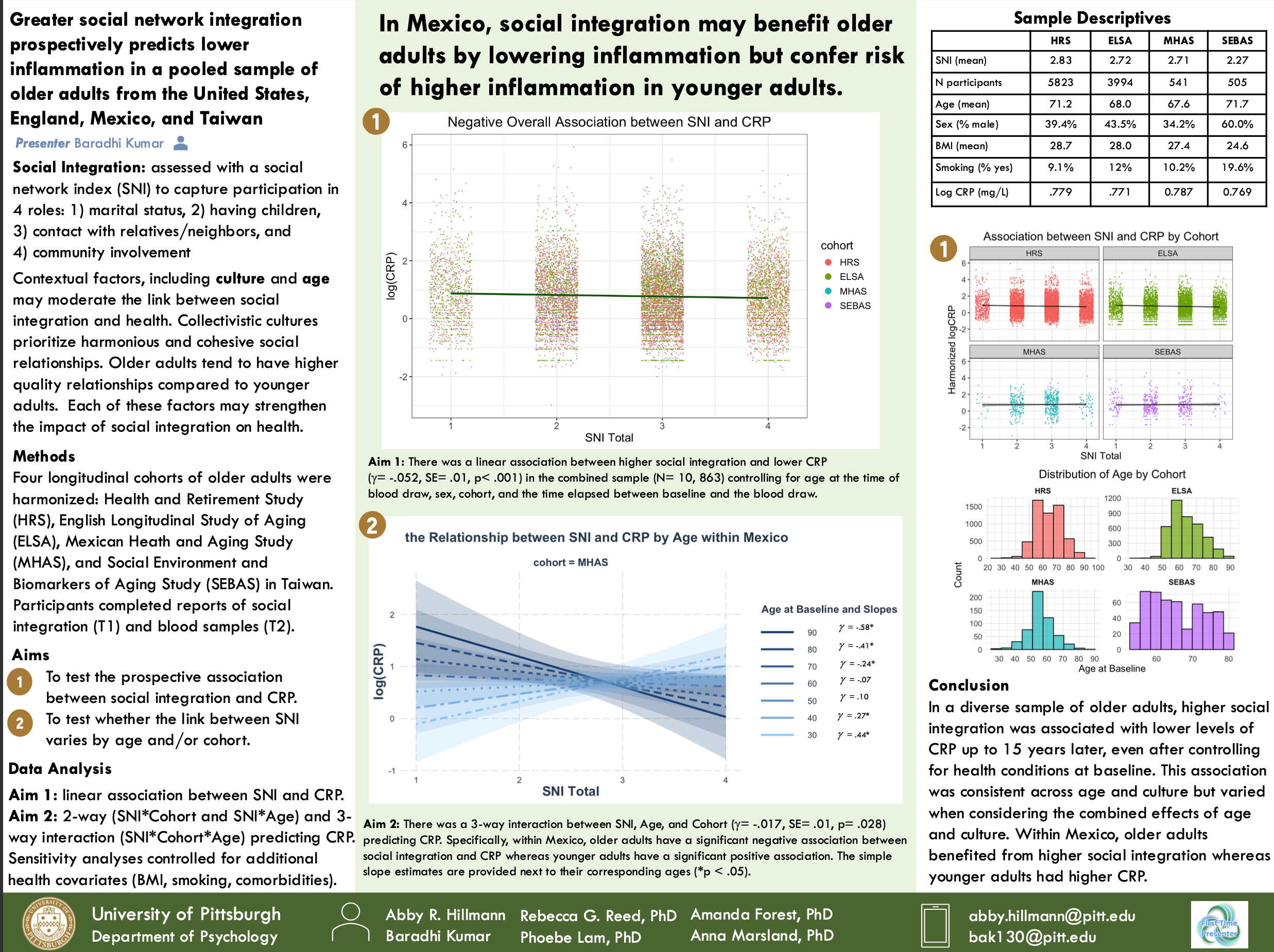 Greater social network integration prospectively predicts lower inflammation in a pooled sample of older adults from the United States, England, Mexico, and Taiwan
